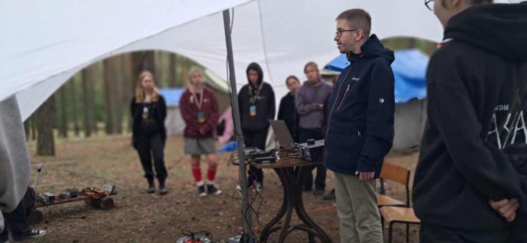 Zajęcia z łączności dla harcerzy Hufca ZHP Puławy na obozie harcerskim w Ocyplu