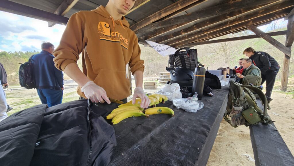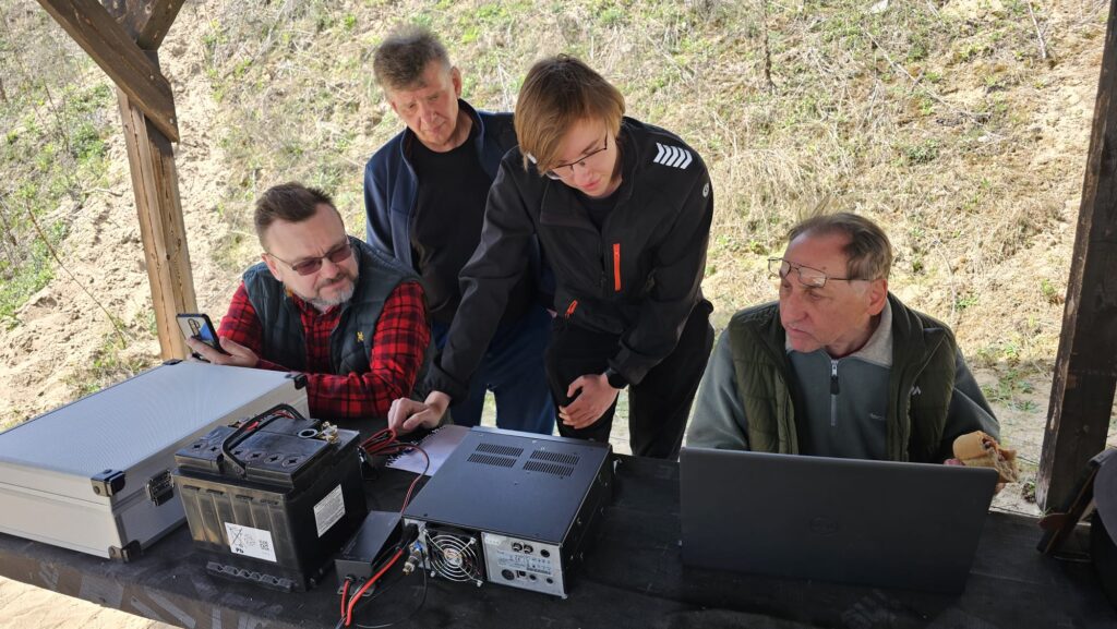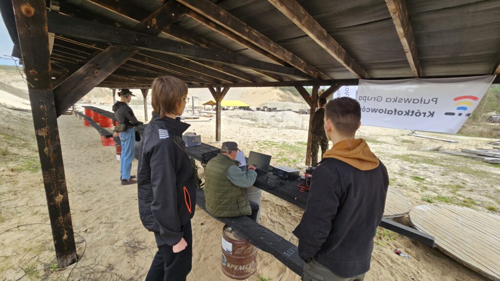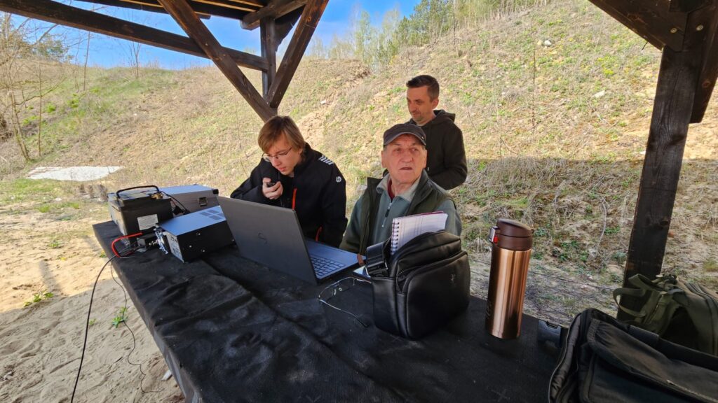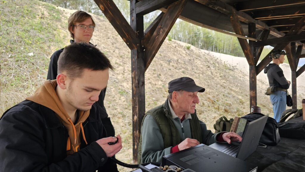 18 kwietnia 2026 roku Światowy Dzień Krótkofalowca świętowaliśmy na strzelnicy w Janowcu. Plan na ten dzień był prosty: radio – strzelnica – ognisko. W ramach zaplanowanych aktywności w obszernej wiacie strzelnicy uruchomiliśmy radiostację terenową SN0LPUna paśmie 40m z wykorzystaniem anteny EndFed i zasilania awaryjnego. Była to okazja dla Pawła, który nie posiadana jeszcze indywidualnego pozwolenia radiowego na przeprowadzenie pierwszych łączności na paśmie KF. Głównym punktem programu było oczywiście strzelanie z broni krótkiej i długiej dostępnej w bogato wyposażonym arsenale strzelnicy. Strzelaliśmy między innymi z: Glock, KBKS, MSBS Grot, karabinka AR oraz strzelby pompki udostępnionej przez odwiedzającego nas kolegę Nikodema SP5NW.