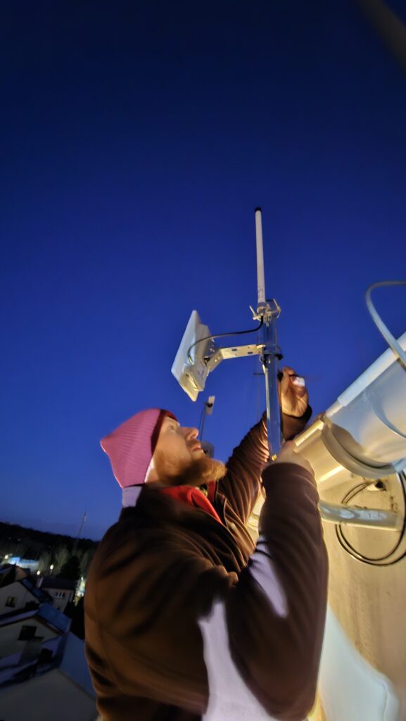 Grzegorz SP8GCZ podczas instalacji nowej anteny przy RPT krotkofalowcy.pulawy.pl