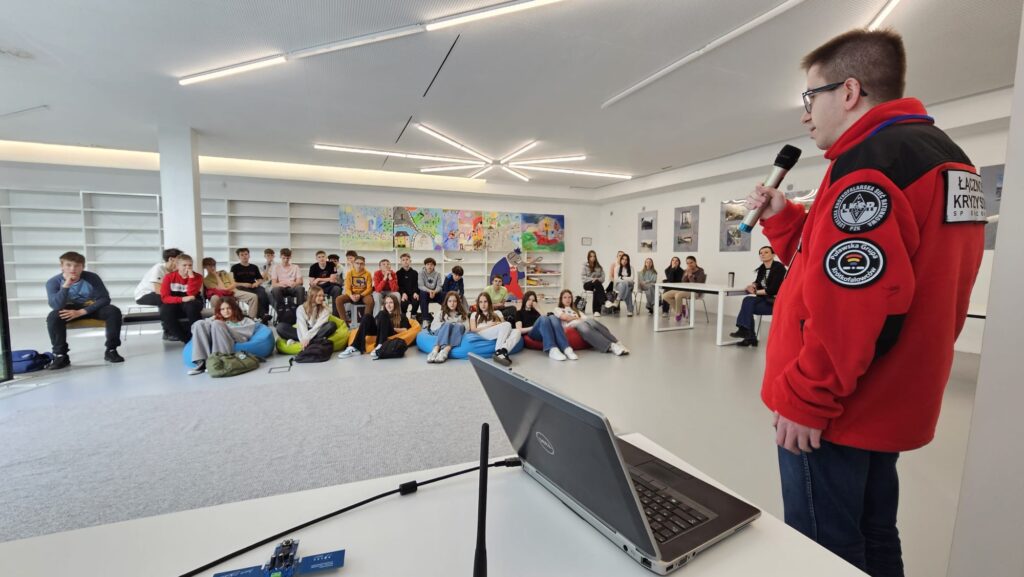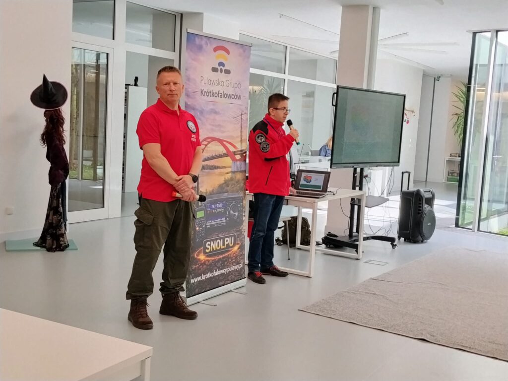 17 kwietnia 2026 roku w ramach popularyzacji krótkofalarstwa odbyło się nasze kolejne spotkanie z młodzieżą. Ty razem na zaproszenie Pana Dyrektora Janusza Raczkiewicza gościliśmy w Gminnym Zespole Szkół w Kazimierzu Dolnym. Młodzieży zebranej w bibliotece szkolnej opowiedzieliśmy na czym polega krótkofalarstwo i zachęcaliśmy do odwiedzenia naszego klubu w Puławach. Spotkanie było też okazją do przeprowadzenia kilku łączności z wykorzystaniem radiotelefonów ręcznych i znaku klubowego SN0LPU. Uruchomiliśmy również stację terenową KF na patio szkolnym, gdzie odwiedzająca nas młodzież mogła posłuchać jak przeprowadza się łączności krajowe i międzynarodowe.